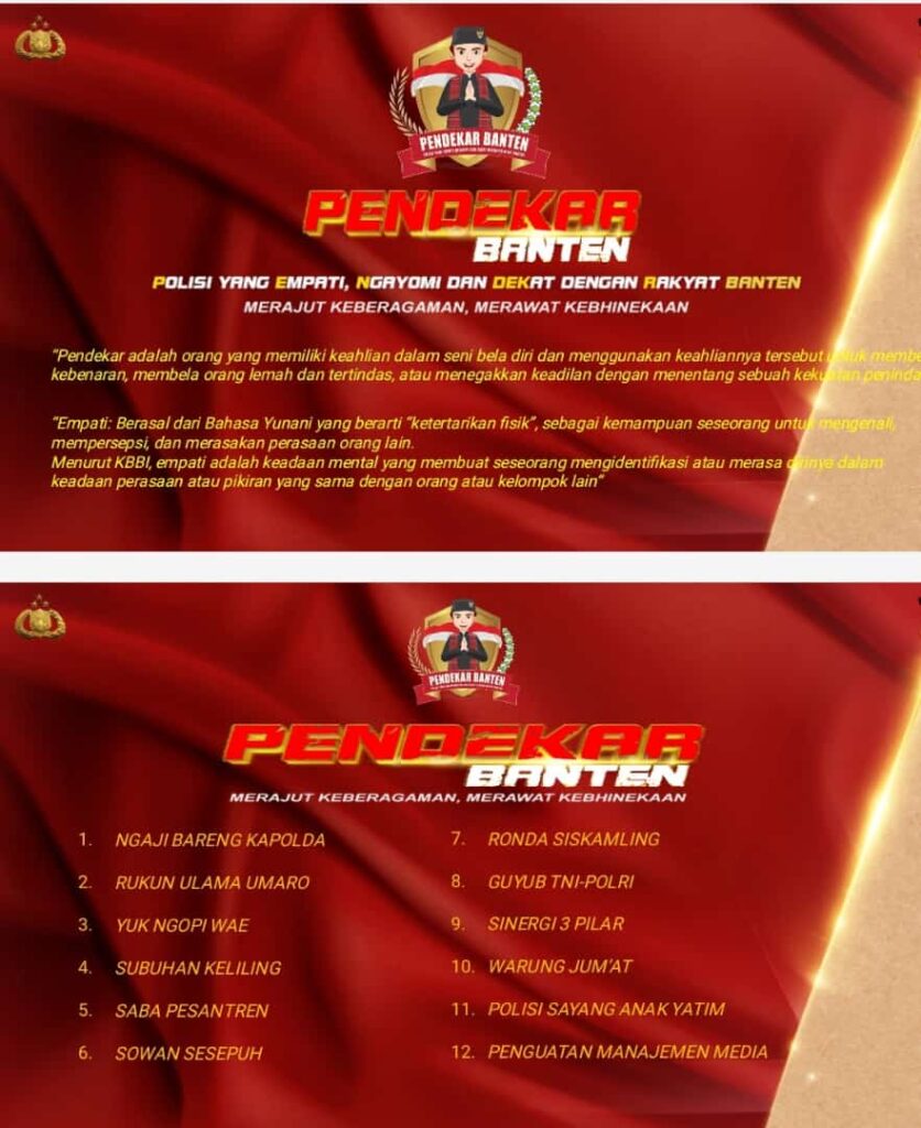 Edy Sumardi menyampaikan dengan jargon Pendekar Banten, sosok polisi yang empati, ngayomi dan dekat dengan rakyat ini harus ada di semua Personel Polda Banten dan Polres jajaran.