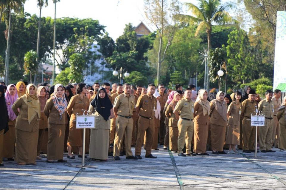Apel pagi diikuti oleh PJ SekdaProv Riau , Kepala Dinas, Aparatur Sipil Negara (ASN) serta Tenaga Harian Lepas (THL) di lingkungan Pemerintah Provinsi Riau. (*/arf)