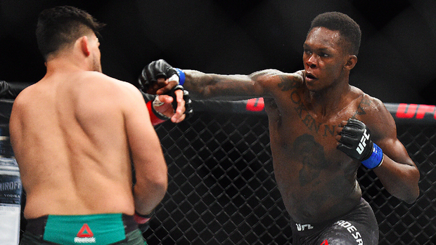 Israel Adesanya memiliki catatan 14 kemenangan KO. (Logan Riely / GETTY IMAGES NORTH AMERICA / AFP)