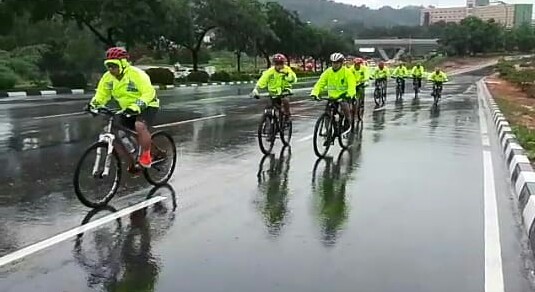 Ditengah guyuran hujan, mereka tampak tidak ragu mengayul pedal sepeda berkeliling kota. Bahkan, di suatu kesempatan, ia terlihat menyapa pengguna jalan raya yang melintas, walau dalam kondisi berbasah-basah.