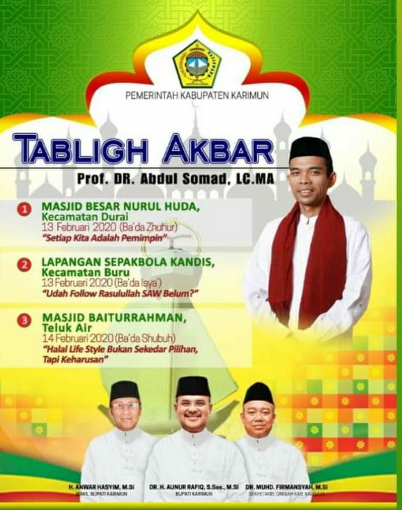 Berita Terbaru | Berita Utama | Karimun | • 5 Februari 2020 • 13-14 Februari, Tabligh Akbar UAS di Durai, Buru dan Tanjungbalai Karimun PROBATAM. CO, Karimun – Penceramah kondang Indonesia, Ustad Abdul Somad atau yang biasa disapa UAS...