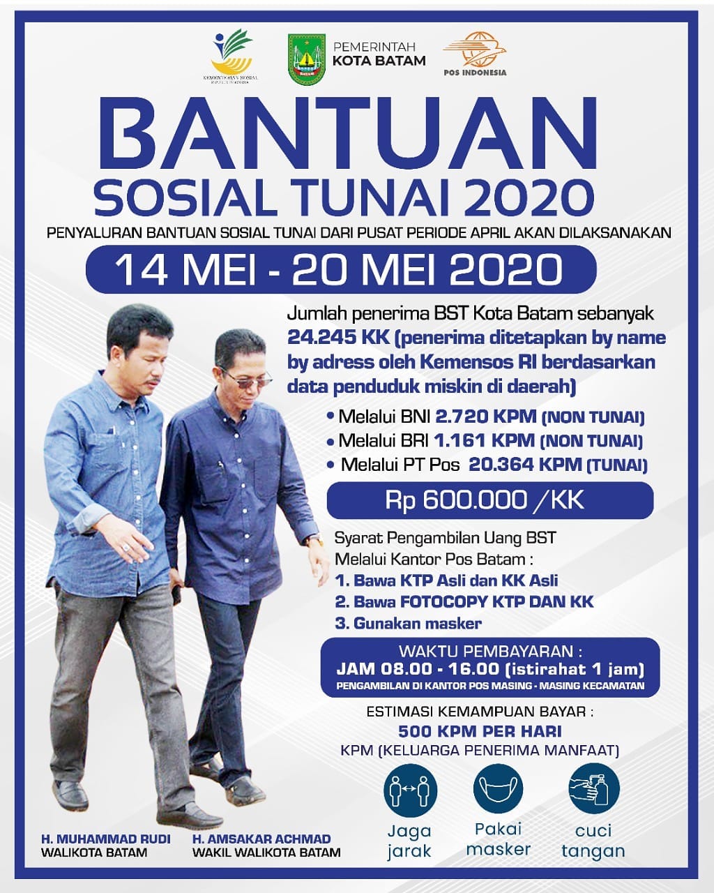 Batam | Berita Terbaru | Berita Utama | • 14 Mei 2020 • 12 Cabang Kantor Pos di Batam, Jadi Lokasi Pembagian BST Kemensos RI PROBATAM.CO, Batam – Penyerahan Bantuan Sosial Tunai (BST) melalui PT Pos akan dibagi di beberapa...