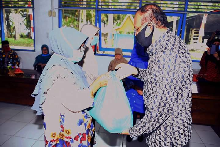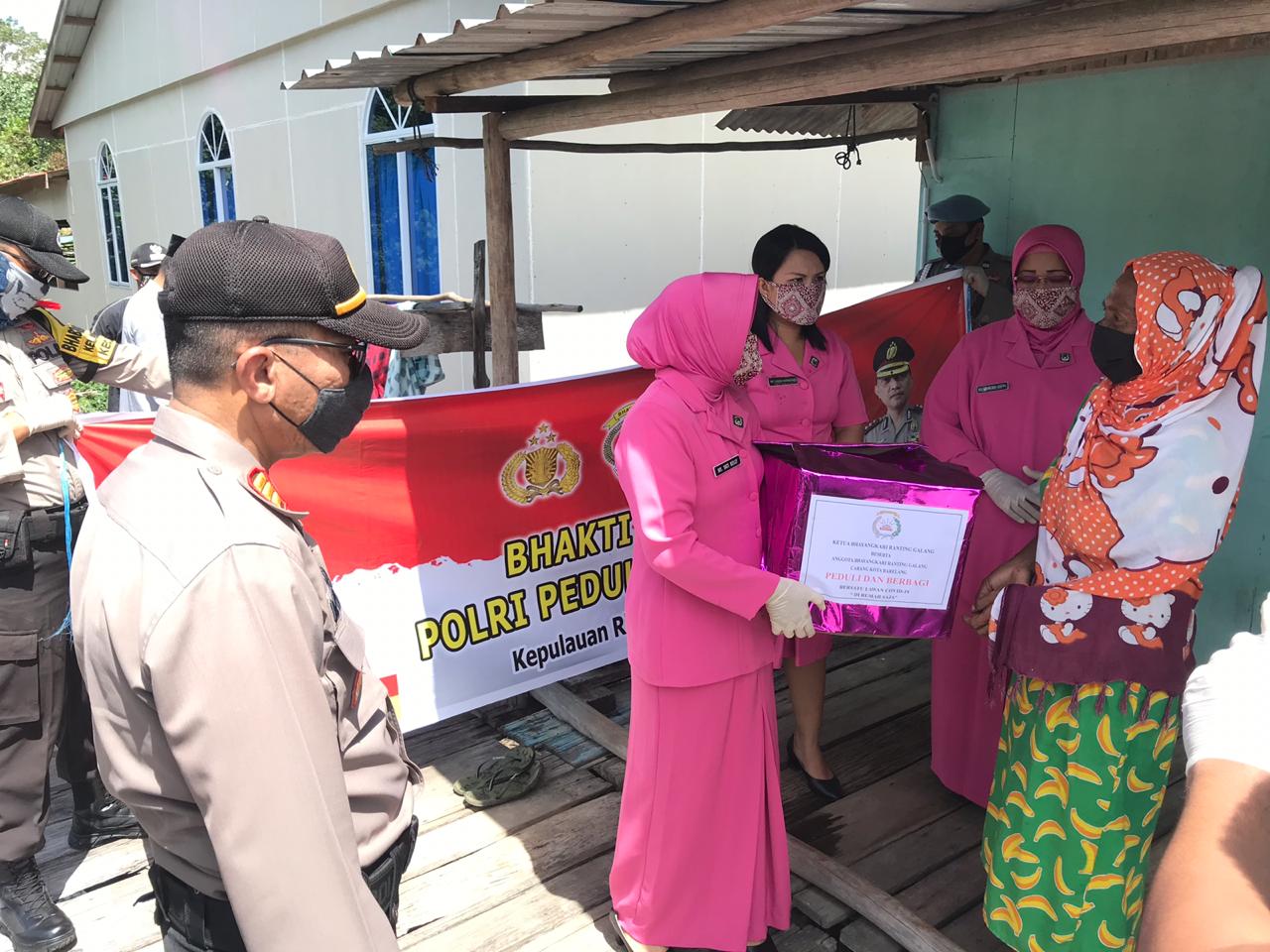 Personil Polsek Galang dan Anggota Bhayangkari Bagikan Sembako Peduli Covid kepada Masyarakat di Galang Baru