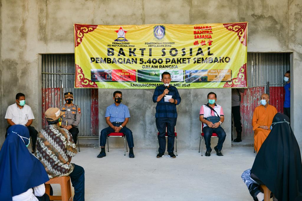 Gubernur Ansar Ahmad berterima kasih kepada pengurus Vihara Bahtra Sasana dan yang selalu melaksanakan aktivitas sosial seperti pembagian paket sembako kepada warga kurang mampu khususnya di Kota Tanjungpinang.