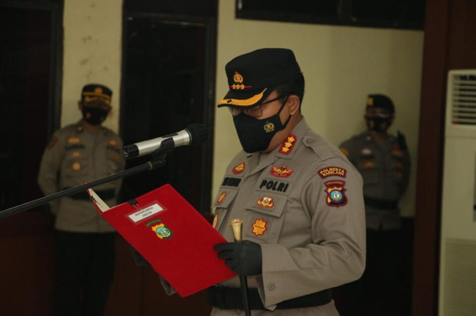 PROBATAM.CO, Batam – Kapolresta Barelang Kombes Pol Yos Guntur S.IK, MH yang didampingi oleh Wakapolresta Barelang AKBP Junoto, S.IK, pimpin Upacara Serah Terima Jabatan (Sertijab) Kabag Ops, Kasat Resnarkoba, Kasat Lantas dan Kapolsek Bulang Polresta Barelang di Aula Aninditha Lantai 2 Mako Polresta Barelang, Sabtu (1/5/2021) sore.
