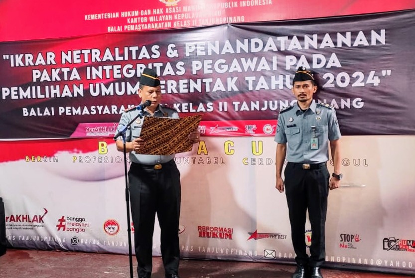 PROBATAM.CO, Tanjungpinang– Sebagai tindak lanjut dari surat Sekretaris Jendral Kemenkumham RI nmr.SEK-UM.01.01.1133 tanggal 23 Nopember 2023 tentang Penyampaian Ketentuan terkait Netralitas ASN dan PPNPN dilingkungan Kemenkumham RI.
