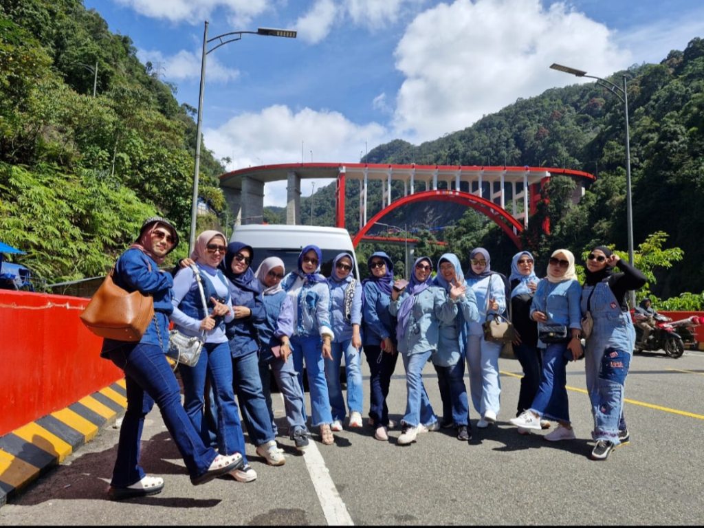 Rombongan ibu-ibu IWMR Kota Pekanbaru juga menyempatkan berfoto bersama di Kelok Sembilan, Limapuluh Kota Payakumbuh Minggu (16/2/2025). Foto : dok/iwmr