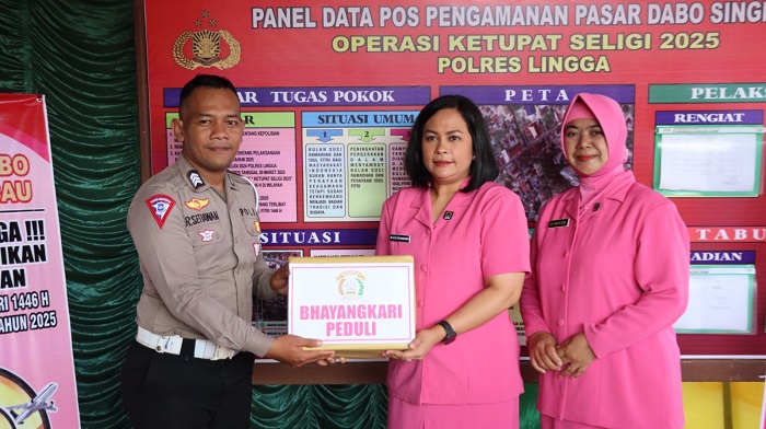 Dukungan Moral untuk Personel Ops Ketupat Seligi 2025 Ny. Esti P.M Nababan, Ketua Bhayangkari Cabang Lingga Berikan Bingkisan dan Motivasi