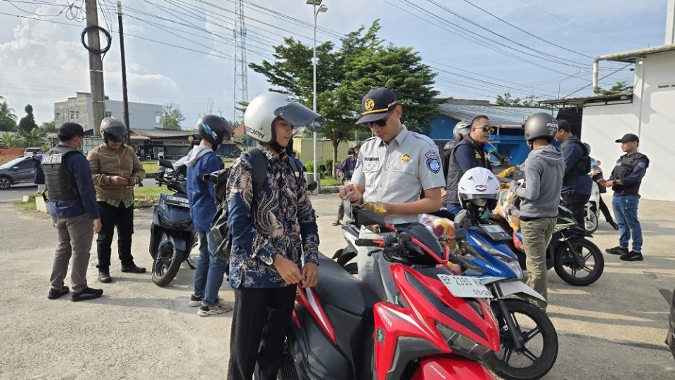 PROBAAM.CO, Bintan – Jasa Raharja bersama dengan UPT PPD Samsat Bintan dan UPTD PPD Samsat Kijang melaksanakan pengendalian, pemeriksaan, dan pengawasan atau razia gabungan terhadap kendaraan-kendaraan yang melintas di Bundaran Km. 16 Bintan pada Kamis, 12 Juni 2025.