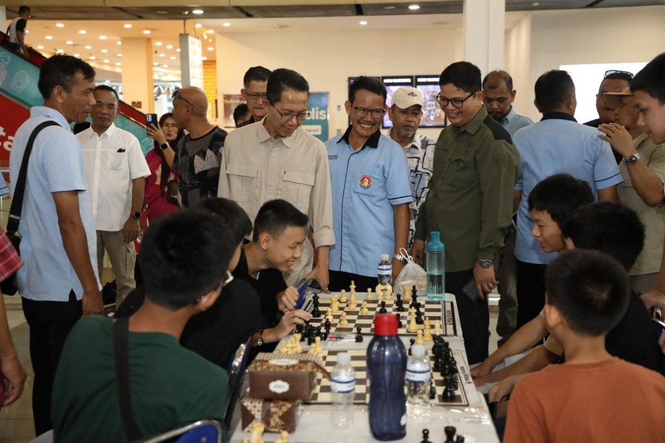 PROBATAM.CO, Batam – Wali Kota Batam, Amsakar Achmad, berhadapan langsung dengan Ketua Persatuan Catur Seluruh Indonesia (Percasi) Batam, Suhandri, di atas papan catur saat pembukaan Turnamen Catur Divisi Utama dan Non Master yang digelar Percasi Kota Batam di MB2 Mall, Sabtu (28/6/2025).