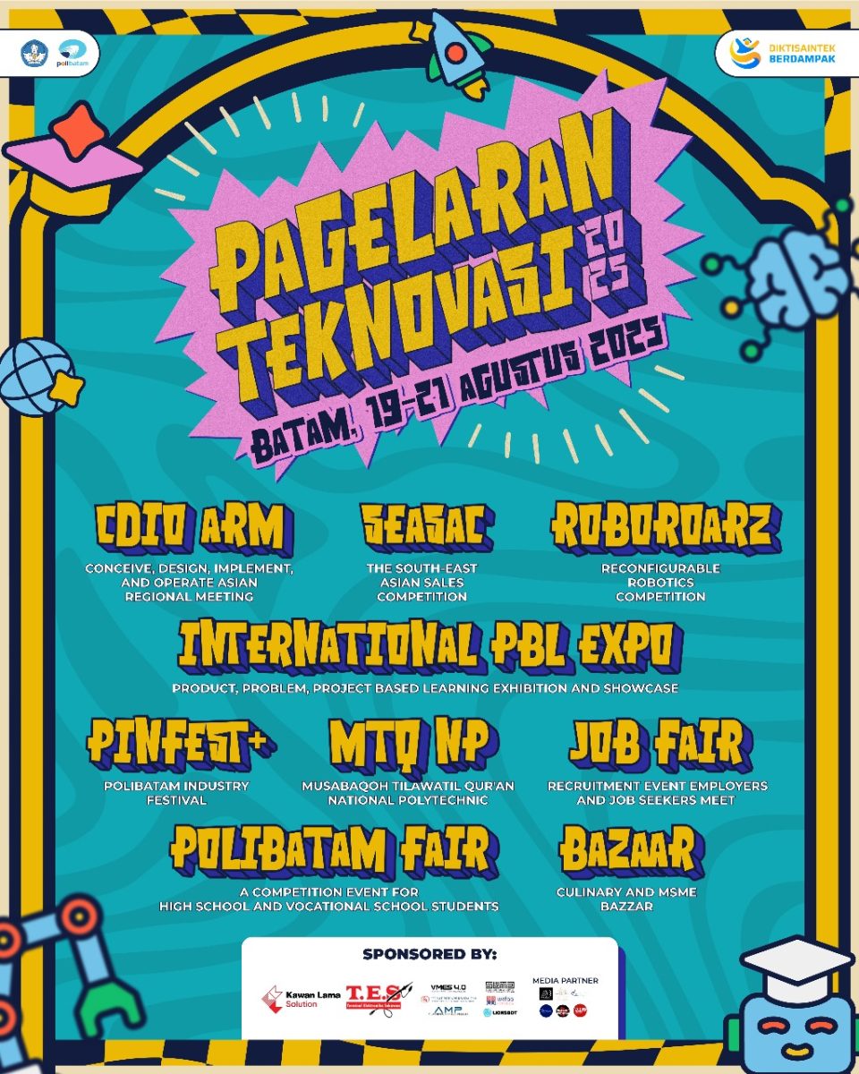 PROBATAM.CO, Batam– Politeknik Negeri Batam (Polibatam) mempersembahkan Pagelaran Teknovasi 2025, yang akan diadakan pada 19 – 21 Agustus 2025, di Kampus Polibatam, Batam, Kepri.
