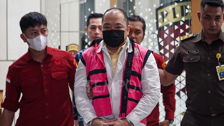 Mengenakan rompi pink dan tangan terborgol, Iwan keluar digiring oleh sejumlah petugas kejaksaan. Sebelum masuk ke mobil tahanan, Iwan mengklaim tak terlibat dalam praktik rasuah tersebut.