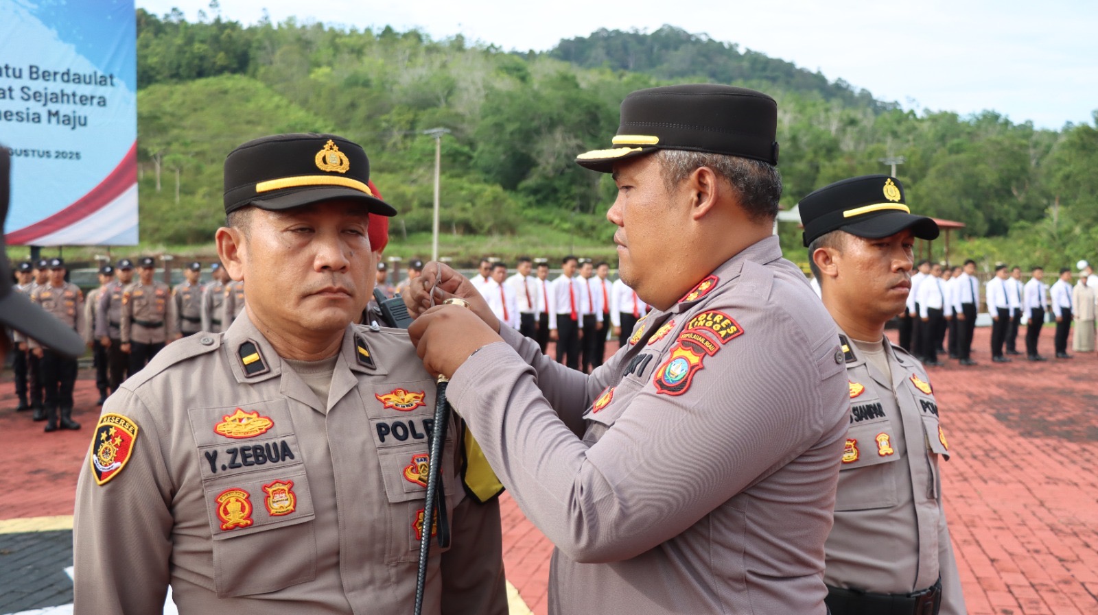 PROBATAM.CO, Lingga – Kepala Kepolisian Resor Lingga AKBP Dr, P.M. NABABAN, S.H., S.I.K., M.H., Memimpin Apel pemasangan Beand Lengan Perwira Samapta (Pamapta) dilingkungan Polres Lingga, Jumat (17/10/2025)