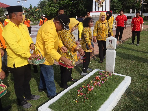Sedangkan setelah usai upacara, Untung Budiawan didampingi Ormas Pendiri dari MKGR, Soksi dan PDK Kosgoro, menabur bunga bersama Anggota DPRD Kota Tanjungpinang dari Partai Golkar.