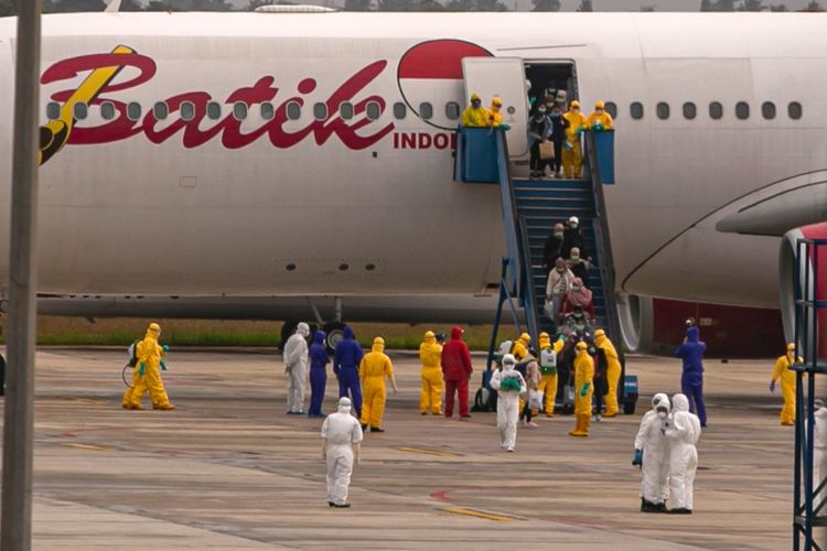 Usai mendarat, langsung dilakukan pemerikaaan kesehatan terhadap 245 WNI yang baru kembali ke tanah air dengan selamat itu. Selanjutnya mereka, diangkut dengan menggunakan tiga pesawat militer TNI AU ke Bandara Raden Sadjad, di Ranai, Kabupaten Natuna, Provinsi Kepri untuk menjalani observasi (karantina) beberapa hari di sana.