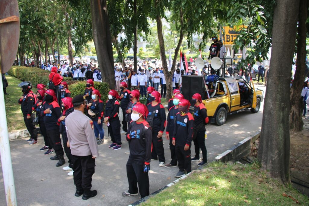 Dengan mengedepankan Tim Negosiator Polwan Polresta Barelang, Aksi Unjuk Rasa berjalan dengan tertib aman dan lancar, serta tetap mematuhi protokol kesehatan.