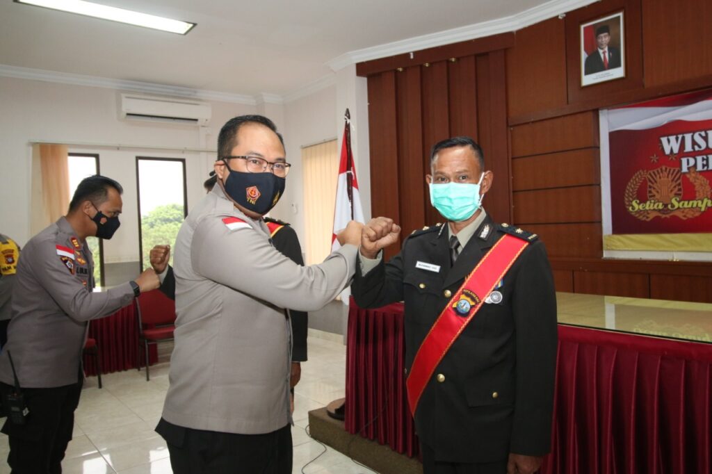 Kapolresta Barelang AKBP Yos Guntur didampingi Kabag Sunda Polresta Barelang Sarbini dalam acara wisuda purna bhakti, Kamis (25/11/2020). ( photo: hms)