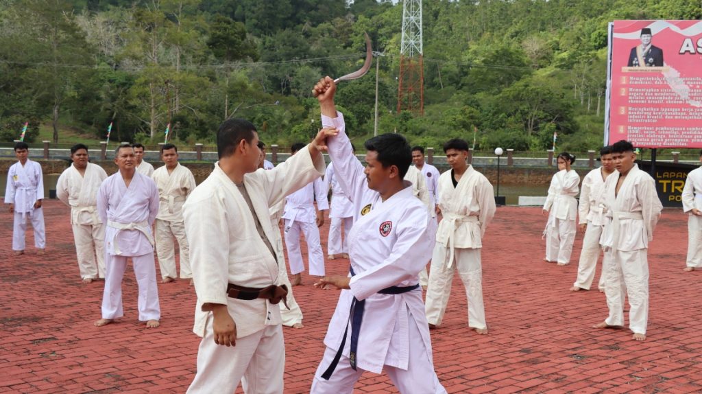 Kegiatan tersebut berlangsung dengan penuh semangat dan kedisiplinan, menampilkan berbagai teknik beladiri sesuai dengan standar yang telah ditetapkan oleh Kepolisian Negara Republik Indonesia.