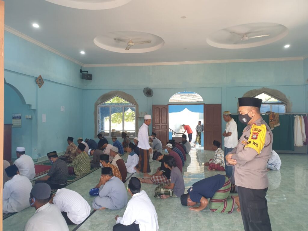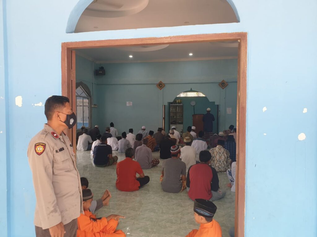 PROBATAM.CO, Batam– Pengamanan (pam) Sholat Jumat dan Sholat Jum’at berjamaah oleh personil Polsek Galang di Mesjid Nurul Jihad, Kelurahan Sembulang, Kecamatan Galang, Kota Batam, Jumat (05/02/2021).