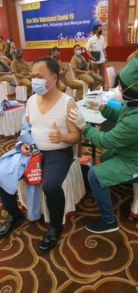 Kadiv Imigrasi Kanwil Kemenkumham Kepri Ikut Vaksinasi Covid- 19 Tahap II Dosis II di Gedung Daerah Kepri