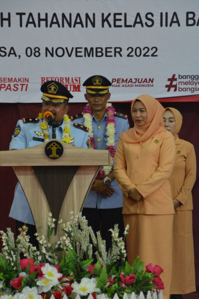Selanjutnya dilanjutkan dengan sambutan Kepala Rutan Kelas IIA Batam yang baru, Faizal Gerhani Putra menyampaikan untuk kerjasamanya untuk kemajuan Rutan Batam di masa kepemimpinannya.
