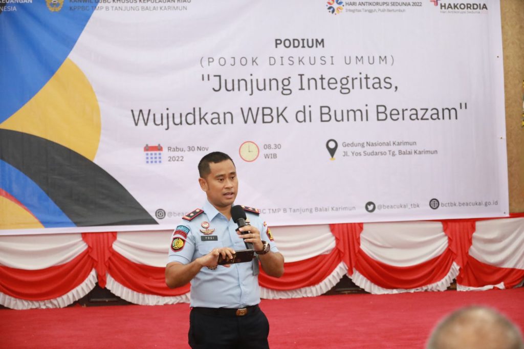 Hari ini Rabu (30/11/2022), Rutan Karimun diundang oleh Kantor Pengawasan dan Pelayanan Bea Dan Cukai Tipe Madya Pabean B Tanjung Balai Karimun untuk menjadi narasumber dalam acara PODIUM (Pojok Diskusi Umum) dengan tema “Junjung Integritas, Wujudkan WBK di Bumi Berazam”.