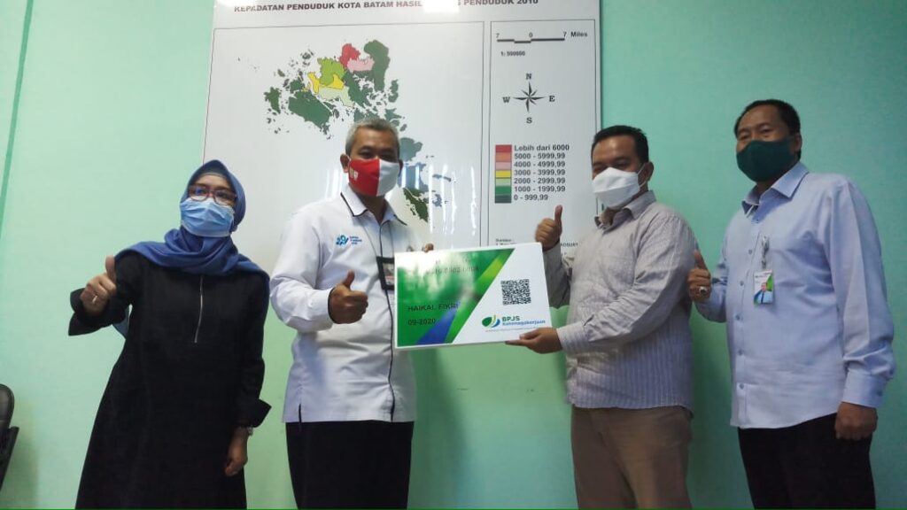 Sebagai bentuk perlindungan jaminan sosial tersebut, dilakukan penyerahan kartu peserta BPJAMSOSTEK secara simbolis oleh Deputi Direktur Wilayah BPJAMSOSTEK Sumbarriau Pepen S Almas didampingi Kepala Bidang Kepesertaan Korporasi dan Institusi BPJAMSOSTEK Batam Nagoya, kepada perwakilan Petugas Sensus BPS Tahun 2020, Rabu (9/9/2020) di Kantor BPS Kepri.