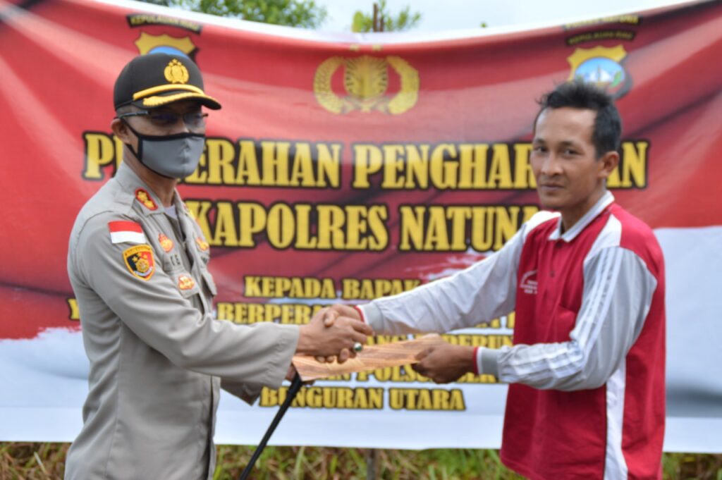 Penyerahan penghargaan dari orang nomor satu di Kepolisian Natuna itu kepada masyarakat yang berjasa tersebut, diselenggarakan di desa Kelarik, kecamatan Bunguran Utara, Kabupaten Natuna, Selasa (21/7/2020) pukul 08.00 WIB pagi.