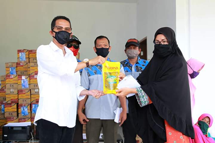 Ketua Harian Gugus Tugas Percepatan Penanganan Covid-19 ini hadir di dua lokasi. Yaitu titik distribusi Kelurahan Tembesi dan Sei Pelunggut.