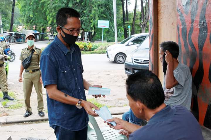 Wakil Wali Kota Amsakar Achmad membagikan masker ke warga, Sabtu (30/5/2020). (photo:mcb)