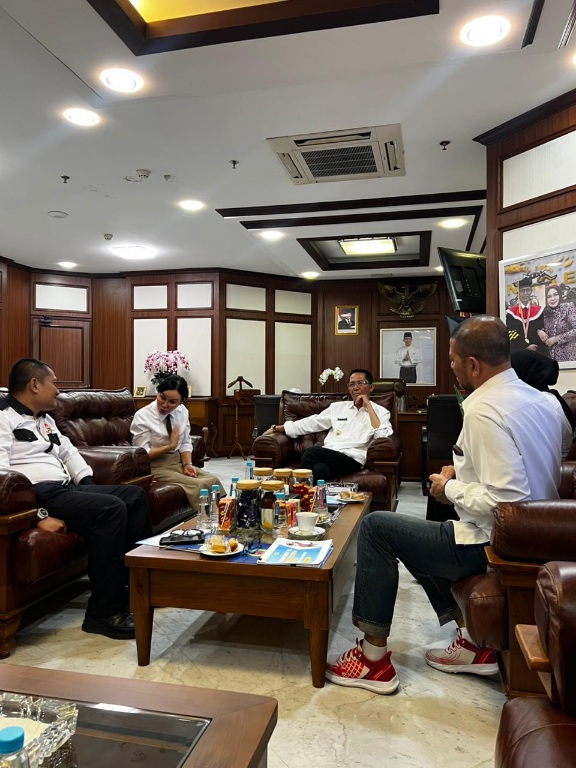 PROBATAM.CO, BATAM- Kepala Badan Pengusahaan (BP) Batam, Amsakar Achmad, bersama Wakil Kepala BP Batam, Li Claudia Chandra, menerima kunjungan Ketua Umum Komite Olahraga Nasional Indonesia (KONI) Batam, Rani Rafitriyani, di ruang kerja Kepala BP Batam, Kamis (23/4/2025).