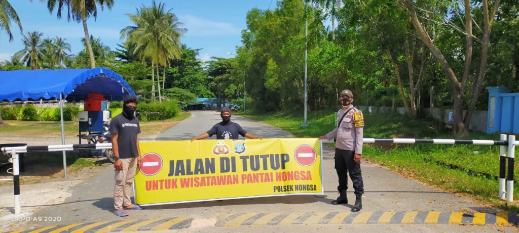 Berkaitan dengan hal itu Polsek Nongsa melaksanakan Pemasangan Spanduk Penutupan Sementara Tempat Wisata Pantai Nongsa, dalam Rangka Perayaan Malam Tahun Baru 2021 bertempat di Pintu Masuk Pantai Nongsa Kelurahan Sambau, Kecamatan Nongsa, Kota Batam, Kamis (31/12/2020).