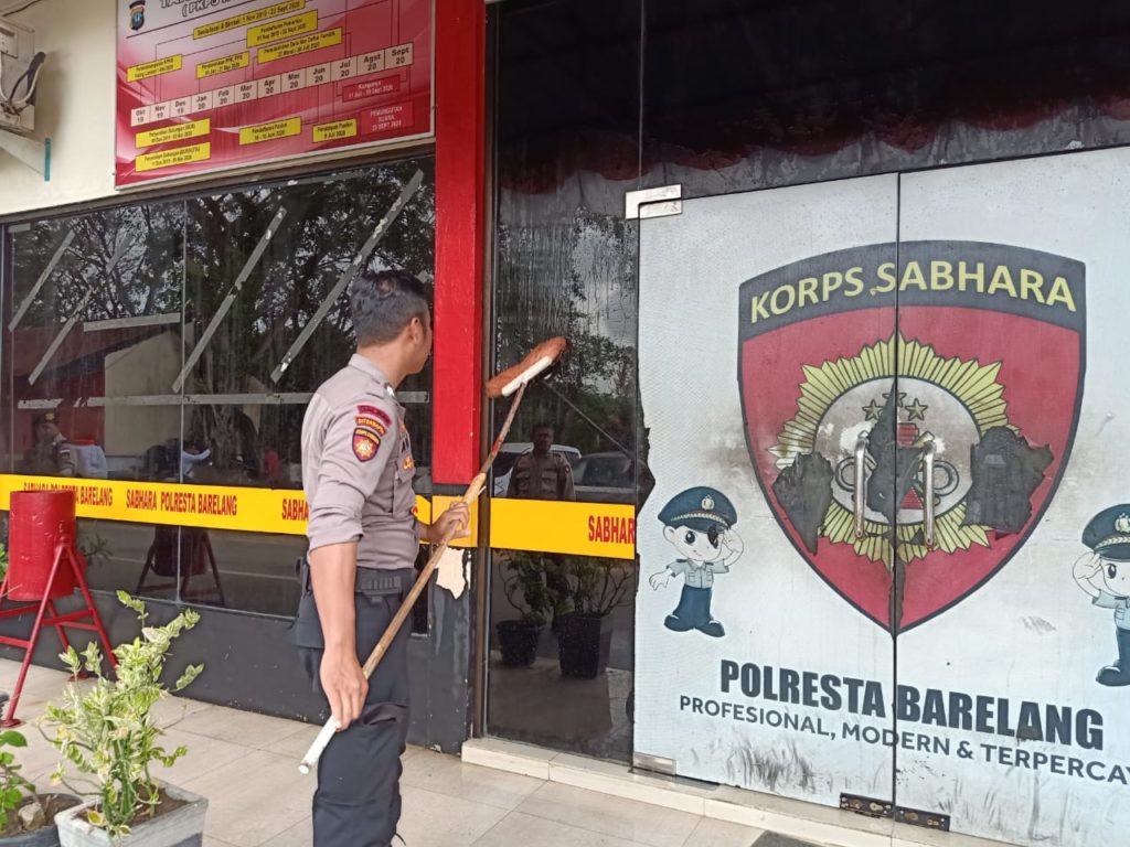 PROBATAM.CO, Batam – Puluhan aparat Satuan Sabhara Polresta Barelang kembali melalukan kerja bakti dan kegiatan bersih-bersih di lingkungan kantor.