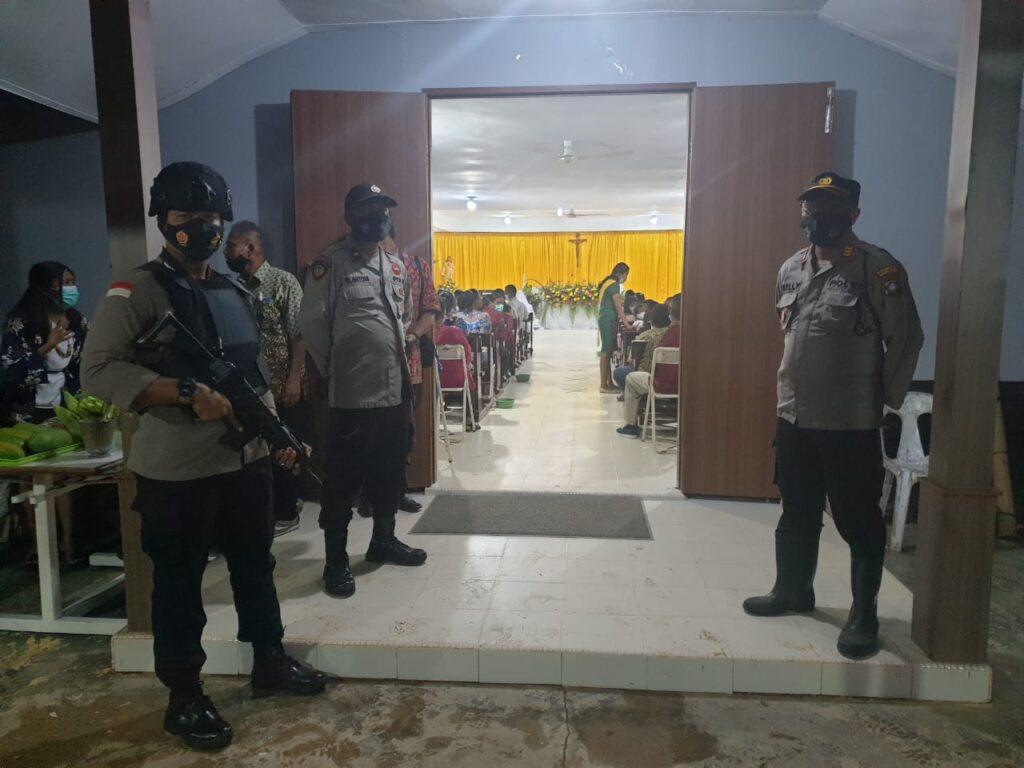 PROBATAM.CO, Batam- Aparat Kepolisian pengamanan (PAM) kegiatan ibadah hari raya Sabtu Suci Umat Khatolik, menyambut perayaan Paskah tahun 2021 di gereja Khatolik Paroki Malaikat Agung Gabriel St Ignatius Loyola, Sei Raya Galang, Batam.