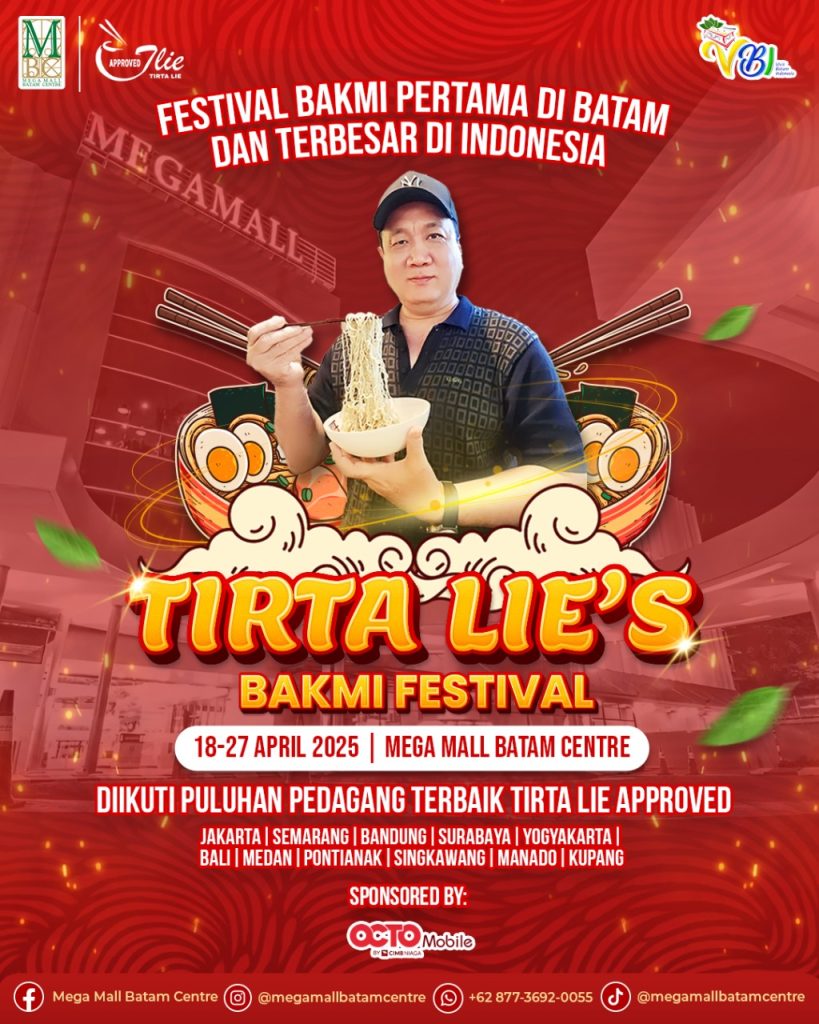 PROBATAM.CO, Batam – Kota Batam akan menjadi tuan rumah Tirta Lie’s Bakmi Festival 2025, sebuah perhelatan kuliner berskala nasional yang menghadirkan beragam sajian bakmi terbaik dari berbagai daerah di Indonesia.