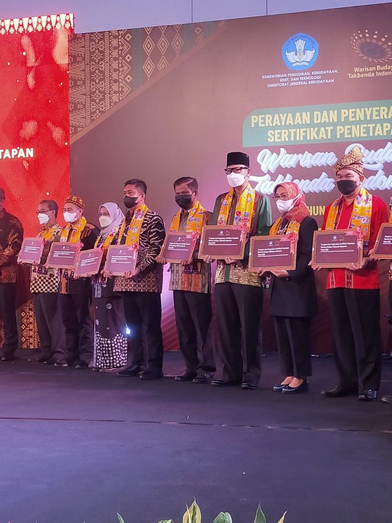 Dirjen Kebudayaan Hilmar Farid menambahkan, penyerahan sertifikat WBTb ini merupakan apresiasi dan penghargaan Kemendikbudristek kepada Pemda dan pemangku kepentingan terkait.
