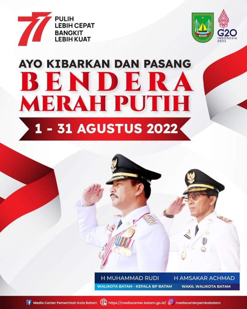 File tentang Logo, spanduk, umbul-umbul HUT Ke -77 Kemerdekaan Republik Indonesia Tahun 2022 tingkat Kota Batam dapat diunduh pada website Pemerintah Kota Batam https://bit.ly/17AGUSTUSPEMKOBATAM.(*/hel)