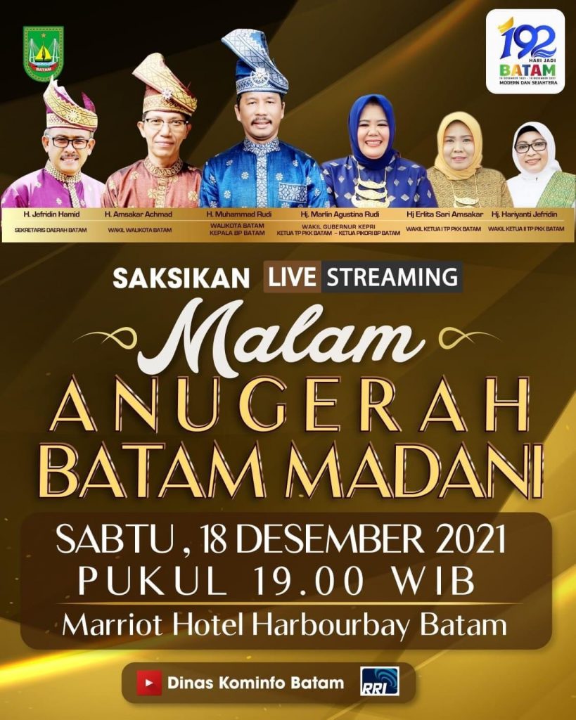 Untuk upacara HJB akan disiarkan langsung oleh Batam FM dan RRI. Sedangkan pada Malam Anugerah Batam Madani masyarakat dapat menyaksikannya melalui chanel YouTube Diskominfo Batam dan RRI. (*/ofi/iin)