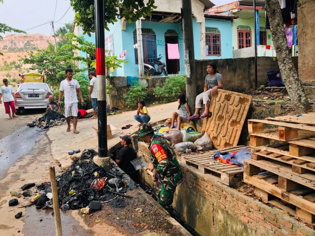PROBATAM.CO, Batam – Babinsa 17/Mangsang Serda S Mendrofa bersama masyarakat Kavling Mangsang Permai melaksanakan kegiatan gotong royong di RW 01 dan RW 02 Kavling Mangsang Permai, Sungai Beduk, Minggu (15/9).