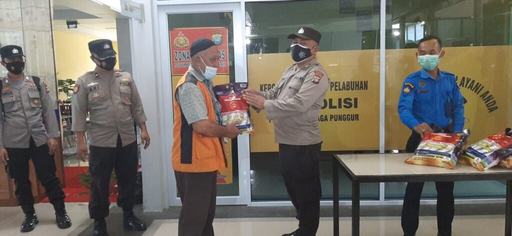 Pembagian Paket sembako sebanyak 10 Paket ini di lakukan oleh Personil Polsek KKP yang di bagikan kepada Masyarakat yang berada di kawasan pelabuhan seperti Supir Taxi, Porter, Cleaning Service Pelabuhan Domestik Punggur serta di lakukan himbauan PPKM level 3 yang saat ini di berlakukan.