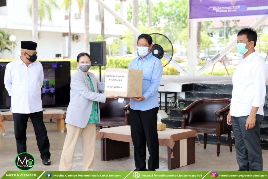 Pada kesempatan tersebut, juga dilakukan penyerahan masker dari gugus tugas kepada sejumlah klinik di Kota Batam. Sebanyak 45.000 lembar masker medis diserahkan ke Ketua Asosiasi Klinik Indonesia Cabang Batam, Yulia. (mcb)