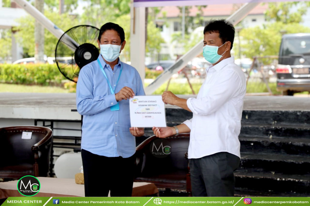Penyerahan bantuan secara simbolis dilaksanakan di Dataran Engku Putri Batam Centre, Kota Batam, Provinsi Kepulauan Riau (Kepri), Selasa (28/4/2020). Bantuan kali ini berasal dari berbagai pihak.