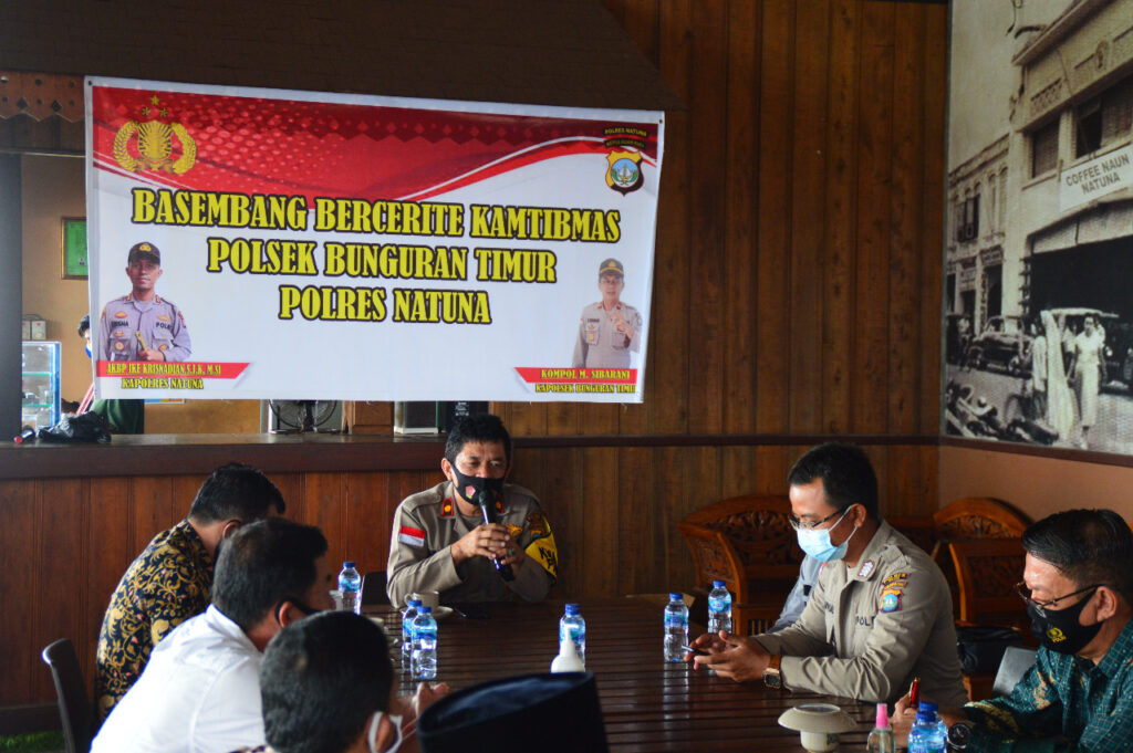 Kapolsek Bunguran Timur Kompol Mangatur Sibarani dalam penyampainnya mengucapakan terima kasih kepada para Tokoh Agama atas kehadiran pada kesempatan Basembang bercerita Kamtibmas Polsek Bunguran Timur Polres Natuna.