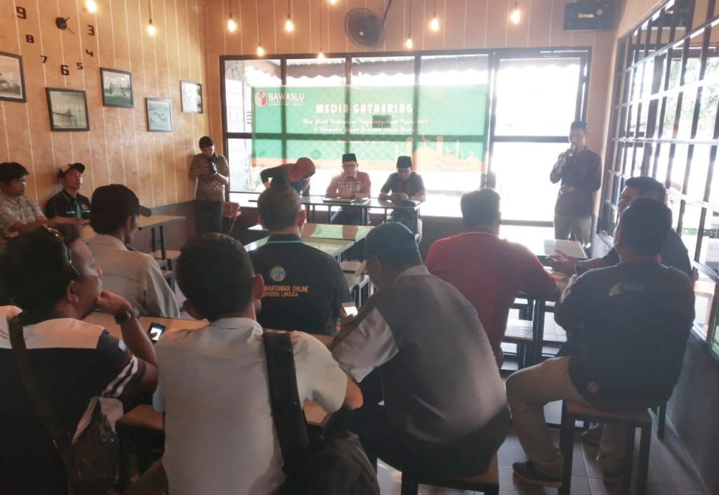 Acara buka puasa bersama Bawaslu Lingga dengan Jurnalis media cetak dan elektronik di Rumah Makan Dapoe Mamak Kecamatan Singkep Kabupaten Lingga, Senin (27/5). (Photo : Jhony P/PROBATAM)