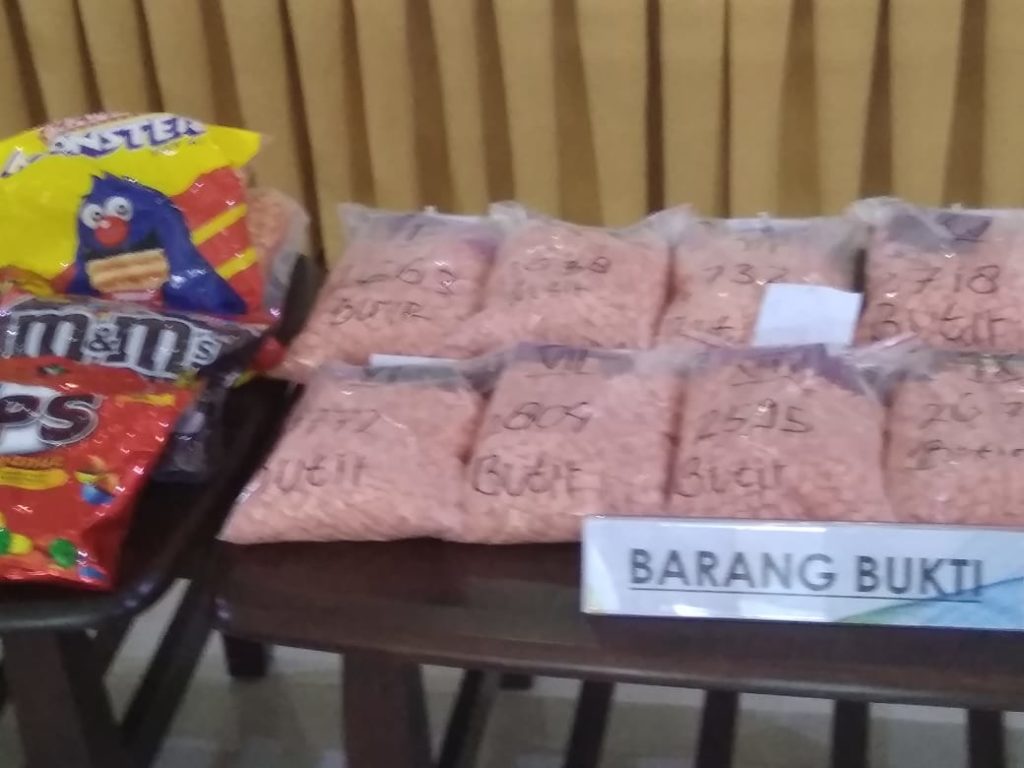 Ribuan butir ekstasi yang dibawa oleh Warga Negara Indonesia (WNI) berinisial J ini disembunyikannya di dalam 11 bungkusan makanan sebagai upaya untuk mengelabui petugas.