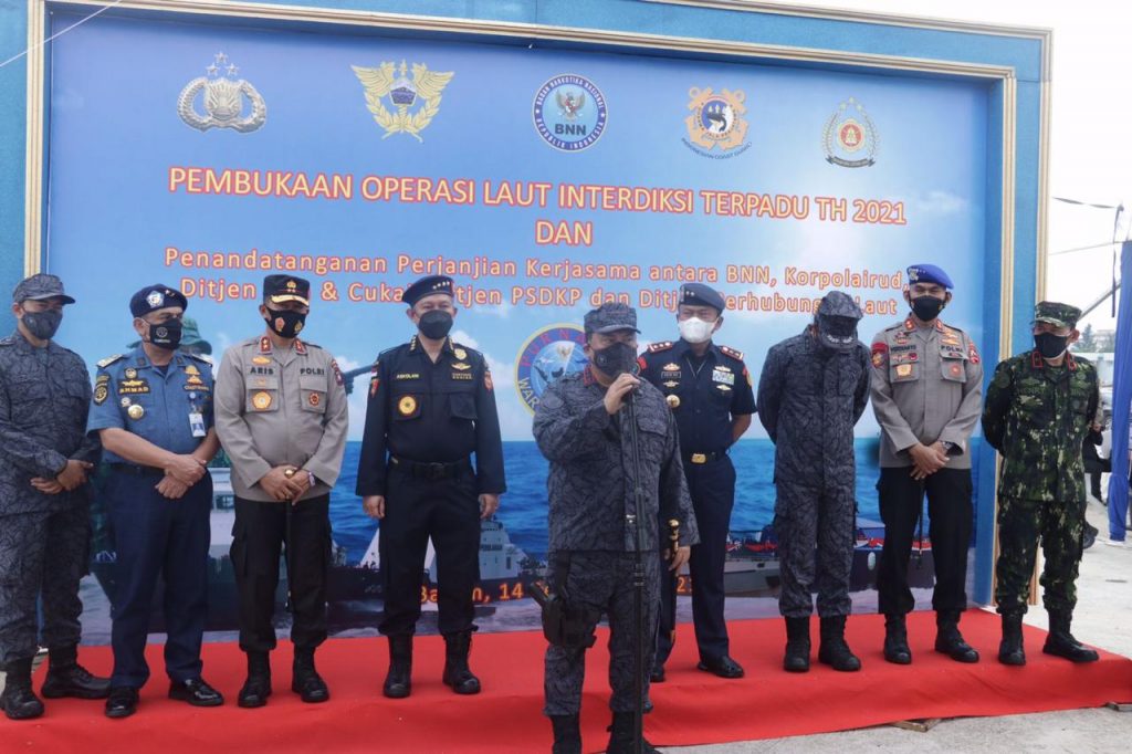 “Sangat penting untuk kita memfokuskan perhatian kita terhadap perbatasan laut Indonesia yang rawan sebagai jalur masuk peredaran Narkotika. Saat ini BNN RI, Korppolairud, Dirjen Bea Cukai, Dirjen Perhubungan laut dan Dirjen PSDKP akan melakukan operasi Laut Interdiksi dengan sandi “PURNAMA” Gempur Peredaran Narkotika Bersama mulai tanggal 14 September sampai dengan 24 September 2021,” ujar Kepala Badan Narkotika Nasional RI, Dr. Petrus Reinhard Golose.