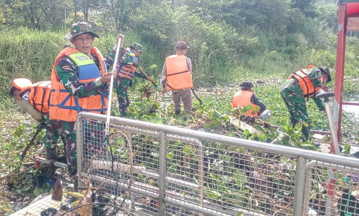 “Kegiatan pengangkatan eceng gondok ini secara berkala terus kami laksanakan, tanaman ini harus ditanggulangi karena pertumbuhannya sangat cepat,” ujar Pelda Aris, Senin 30 Maret 2026.