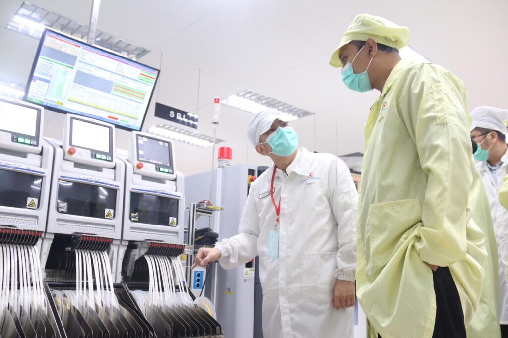 Stanly Rocky selaku Quality Assurance dan Training Center Manager di PT. Sat Nusapersada memaparkan keseluruhan kegiatan produksi mulai dari perakitan alat elektronik sampai dengan proses pengirimannya.