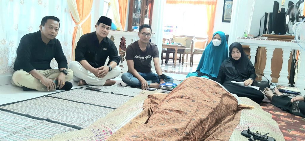 Ketua SMSI Kota Batam Indra Helmi dan pengurus bersama keluarga almarhum sedang di rumah duka, Kamis (30/6/2022). (Photo: dok/faisal)