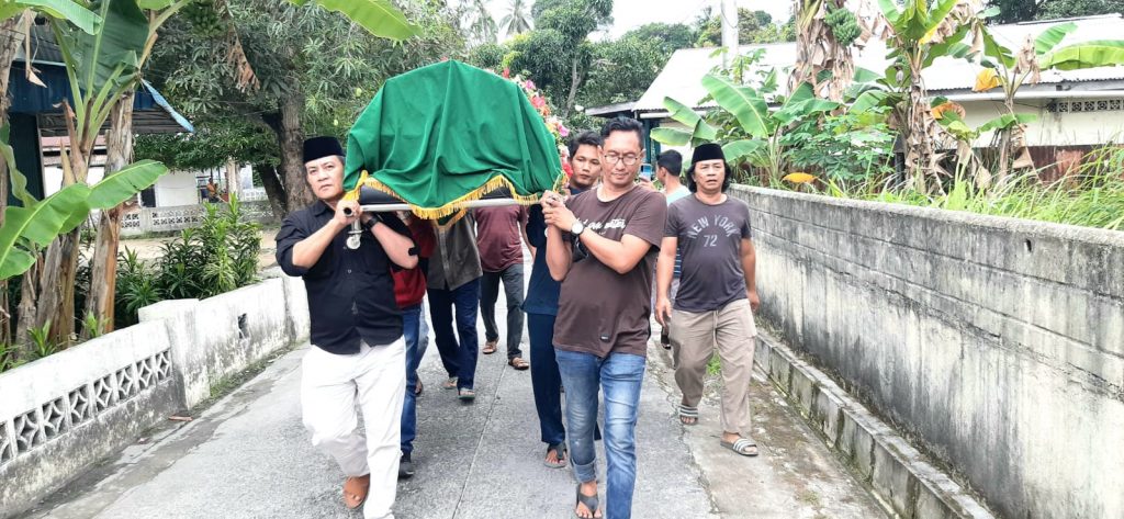 Ketua SMSI Kota Batam Indra Helmi dan Sekretaris SMSi Kota Batam, M. Kahfi Ansyarullauh beserta keluarga menggusung Jenazah, Kamis (30/6/2022). (Photo: dok/faisal)